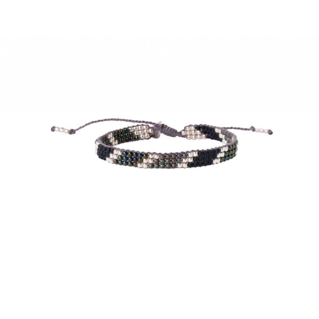 Náramek Black Onyx Silver je skvělým kouskem z A Beautiful Story. Je to směs černých a stříbrných prvků a obsahuje skleněné korálky, mosaz a černé onyxové drahokamy.
