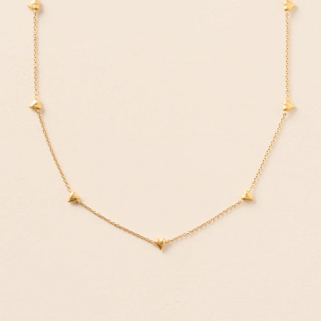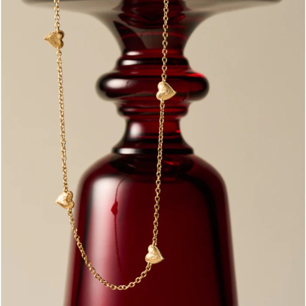 Každé srdce má lehce vyklenutý, tepaný povrch a je orámováno jemným perličkovým detailem, který dodává šperku něžný, romantický a nadčasový charakter.