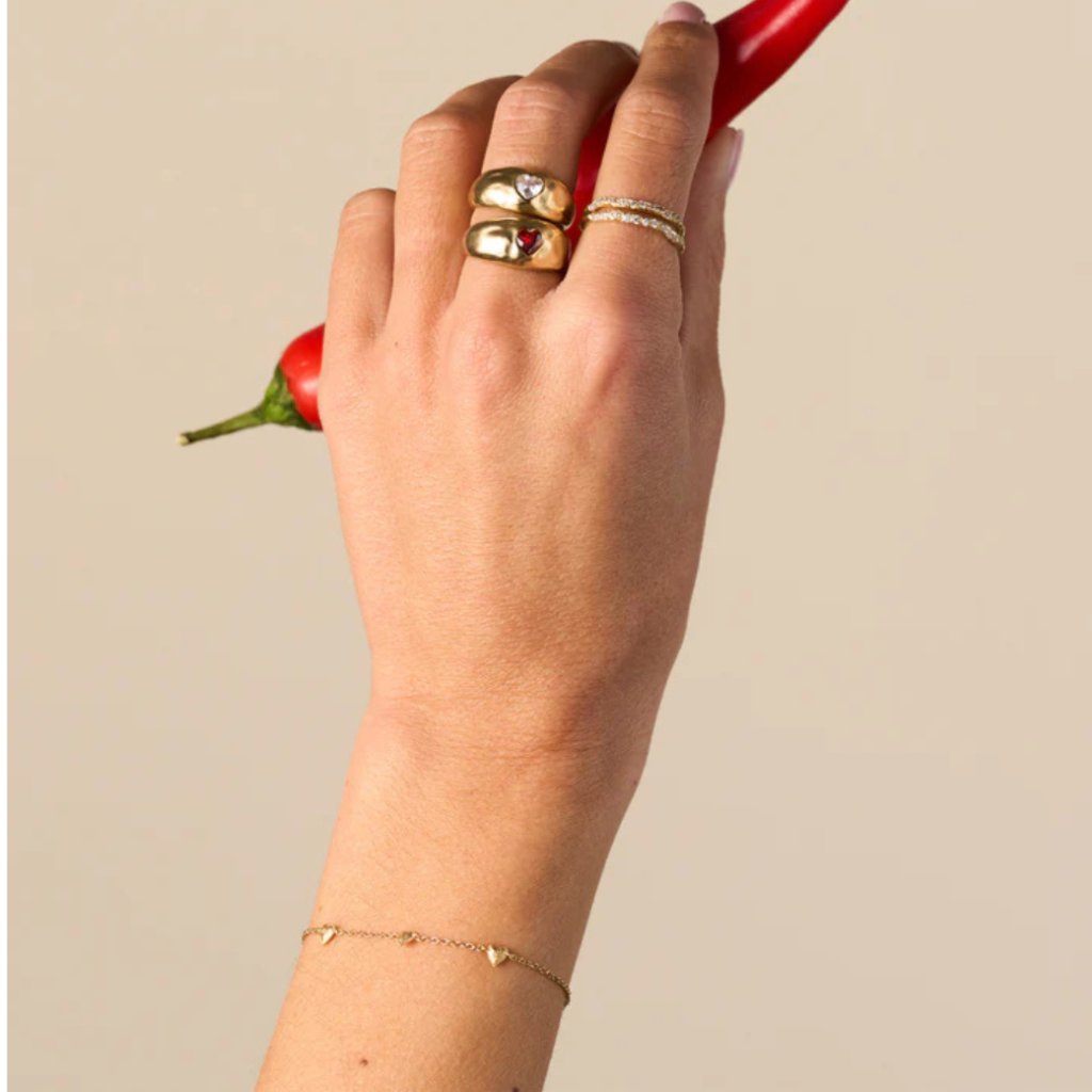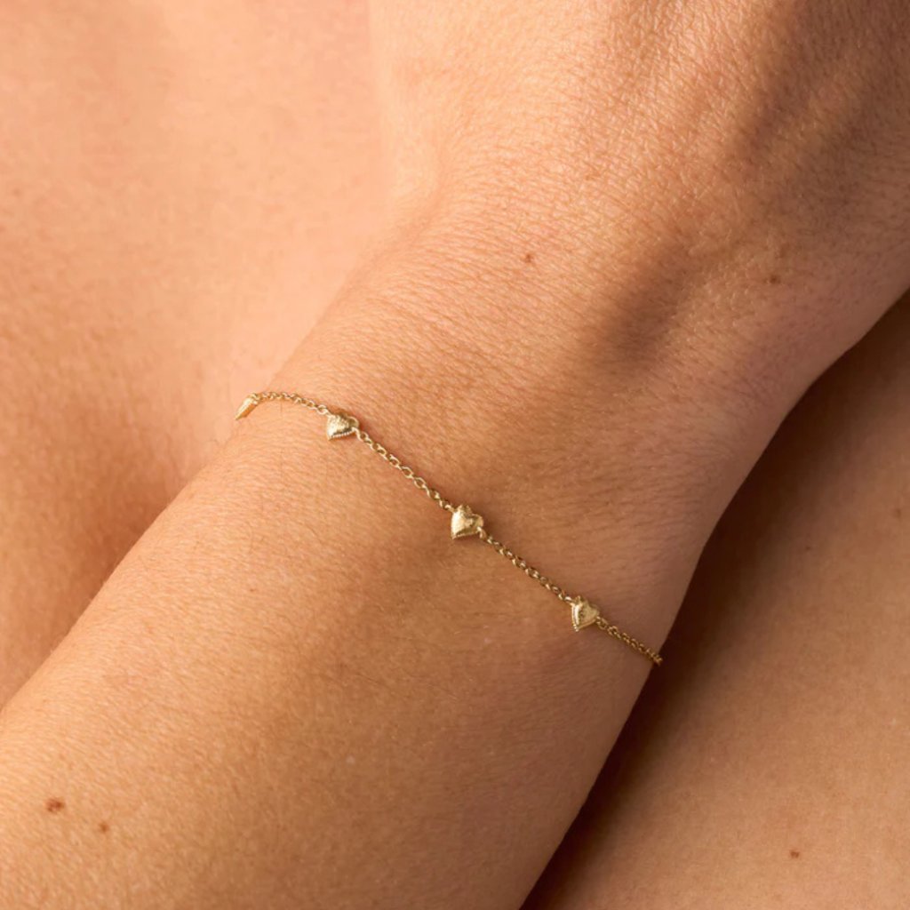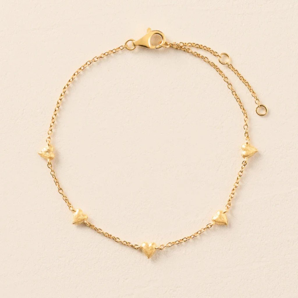 Každé srdce má lehce vyklenutý, tepaný povrch a je orámováno jemným perličkovým detailem, který dodává šperku něžný a romantický charakter.
