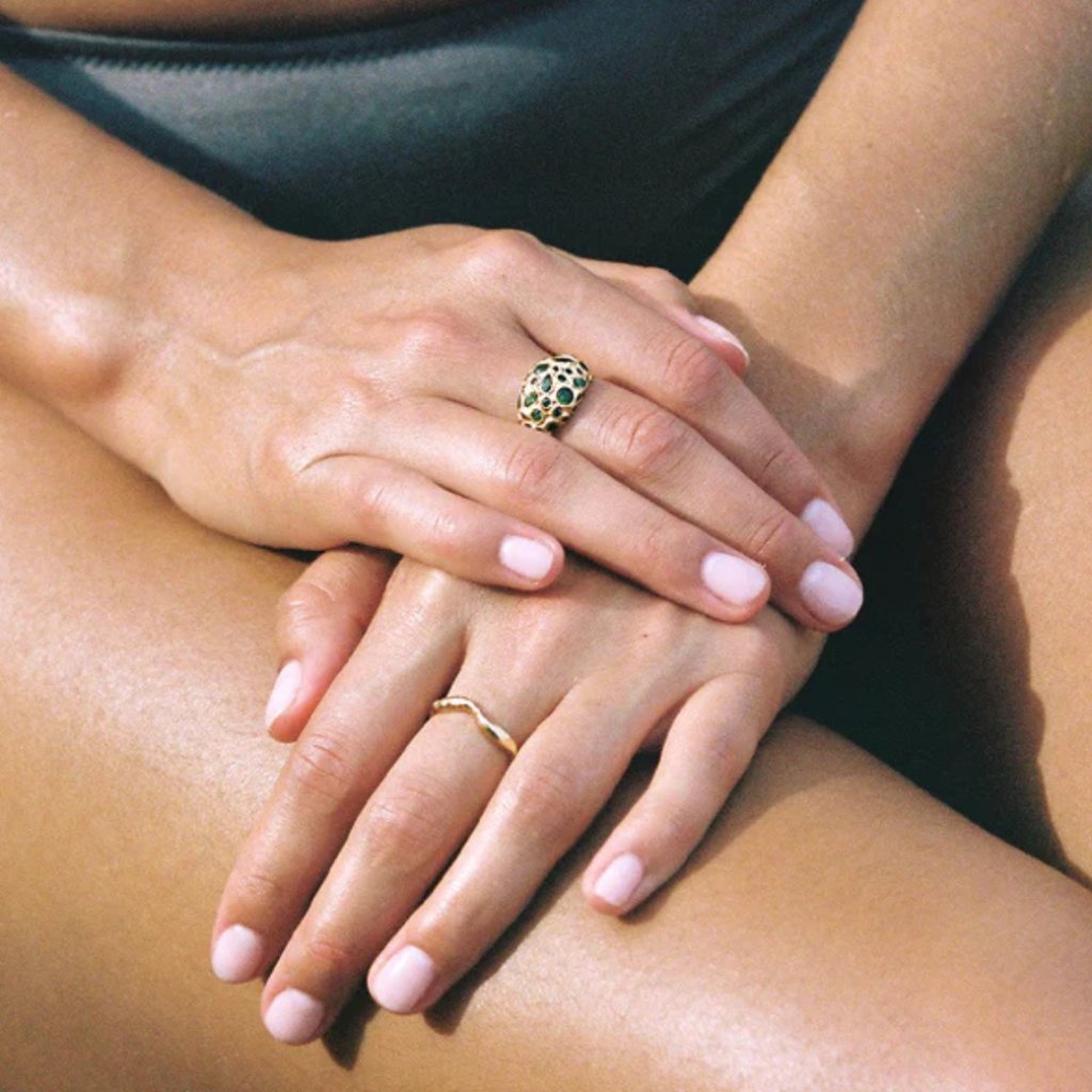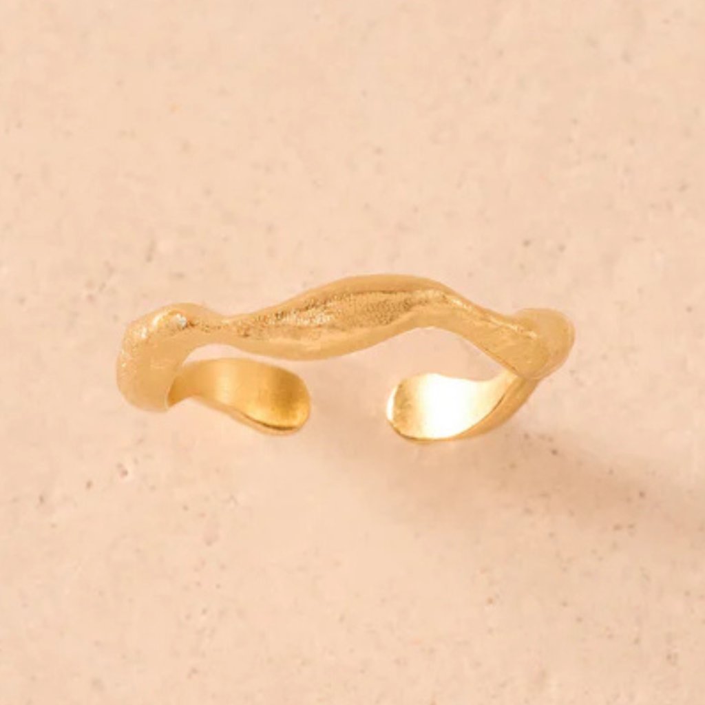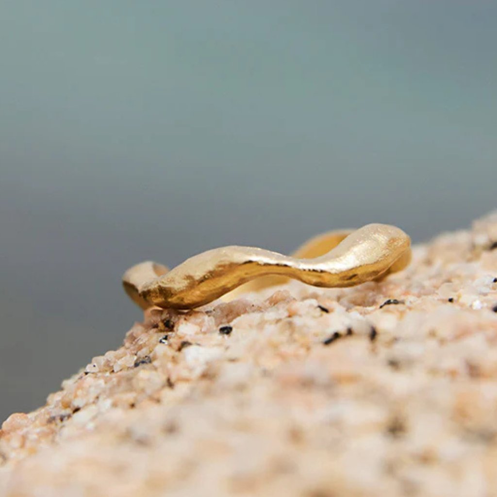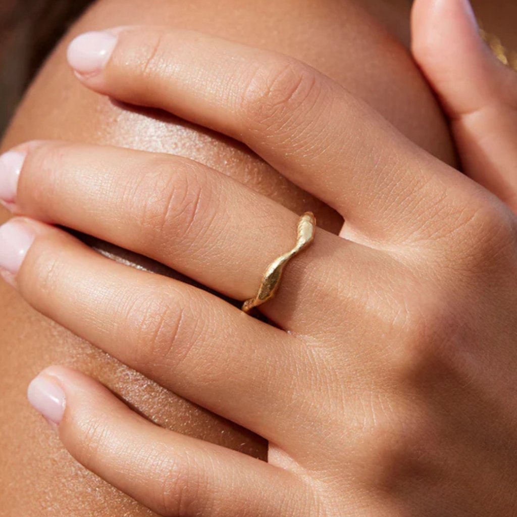 Jemný, tenký a lehce zkroucený prsten připomíná hebký pohyb vln na hladině. Je ideální pro vrstvení s dalšími prsteny, ale zazáří i samostatně jako minimalistický doplněk. Nová klasika, která se hodí ke každému stylu a outfitu.