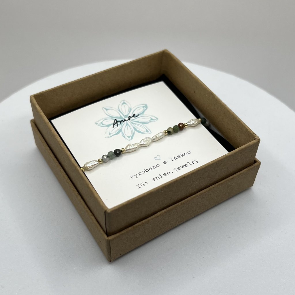 Náramek lze nosit samostatně, ale nejkrásněji vynikne ve vrstvení s dalšími jemnými náramky. Ideální jako drobný dárek, osobní talisman nebo milá upomínka.