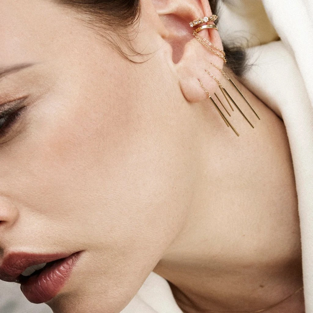 Kombinace zlatého kroužku a dvou jemných řetízků vytváří moderní a lehce odvážný efekt, který skvěle doplní každodenní i výraznější outfit.