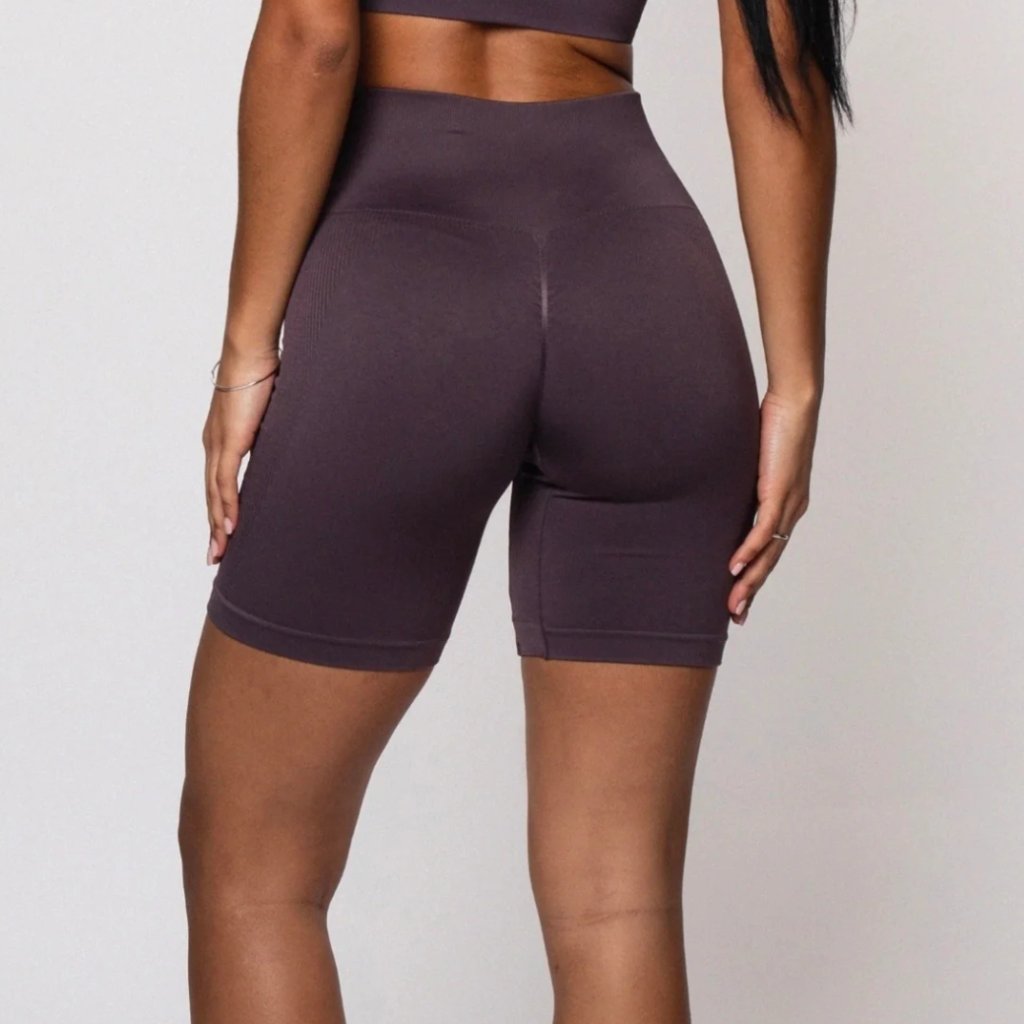 Pohodlné bezešvé šortky s vysokým pasem, který jemně stáhne oblast břicha, aniž by tlačil. Zřasení na zadní straně vytváří přirozený push-up efekt. Spodní lem nohavic je široký a bez gumiček, takže se nezařezává do nohou.