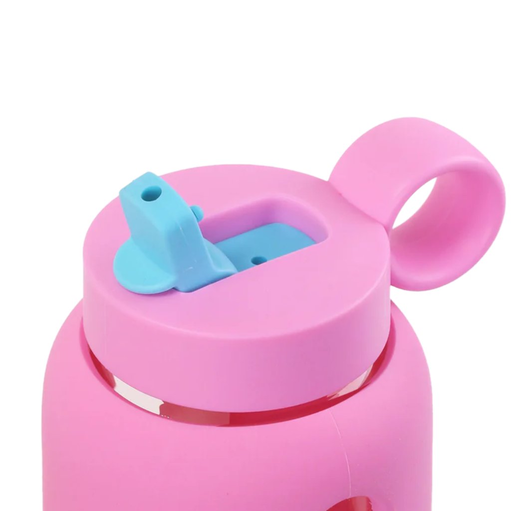 Kompaktní skleněná láhev s praktickým flip víčkem je vyrobená z borosilikátového skla a navržená tak, aby byla ideální na cesty i každodenní použití. Zajišťuje bezpečné, hygienické a pohodlné pití pro děti.