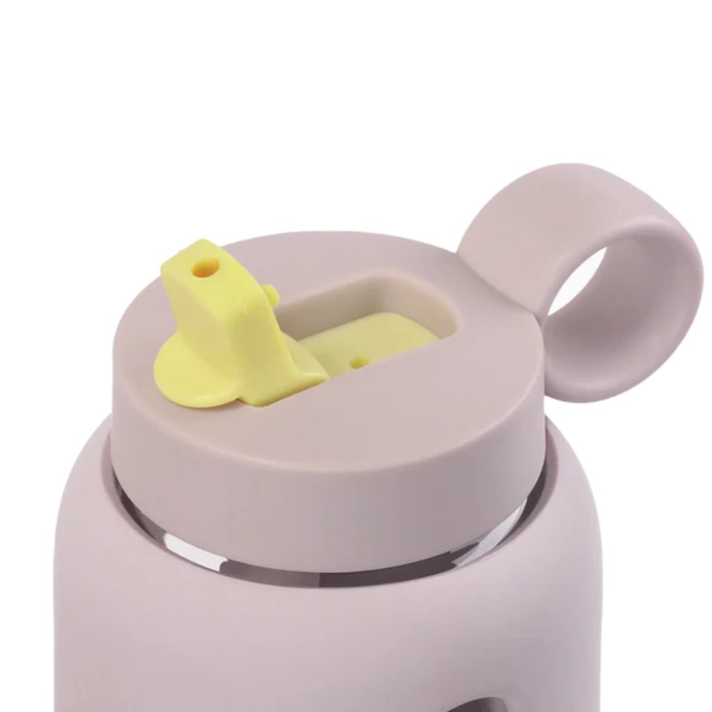 Kompaktní skleněná láhev s praktickým flip víčkem je vyrobená z borosilikátového skla a navržená tak, aby byla ideální na cesty i každodenní použití. Zajišťuje bezpečné, hygienické a pohodlné pití pro děti.