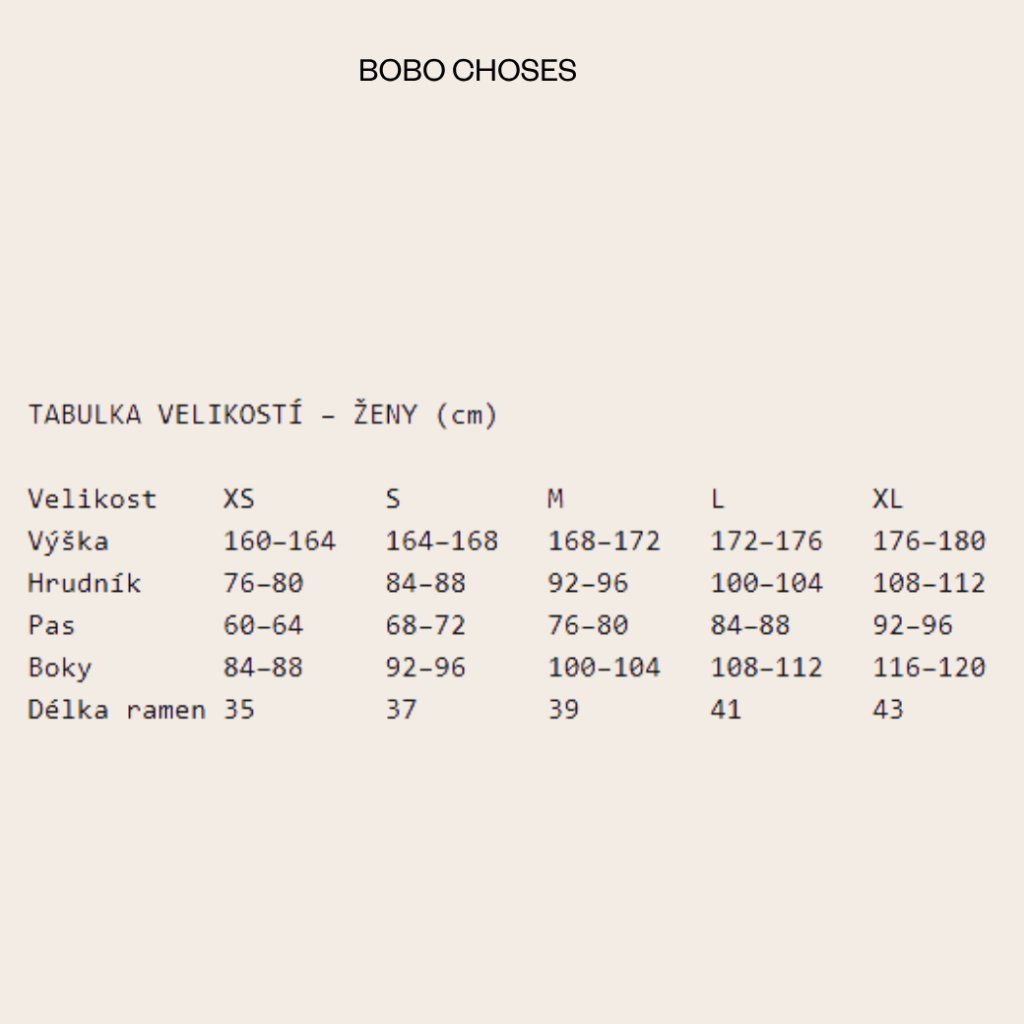 Značka Bobo Choses se zrodila v roce 2008 a od té doby vytváří imaginární světy, ve kterých mohou děti prozkoumávat svou kreativitu, hrát si a užívat si života. Jejich kolekce pro dospělé obsahují potisky a tvary Bobo Choses v dospělých velikostech pro rostoucí mladé dospělé, kteří oceňují kreativitu a rádi se baví! V Bobo Choses sází na unisex oblečení, které je pohodlné a lze jej kombinovat mnoha způsoby.