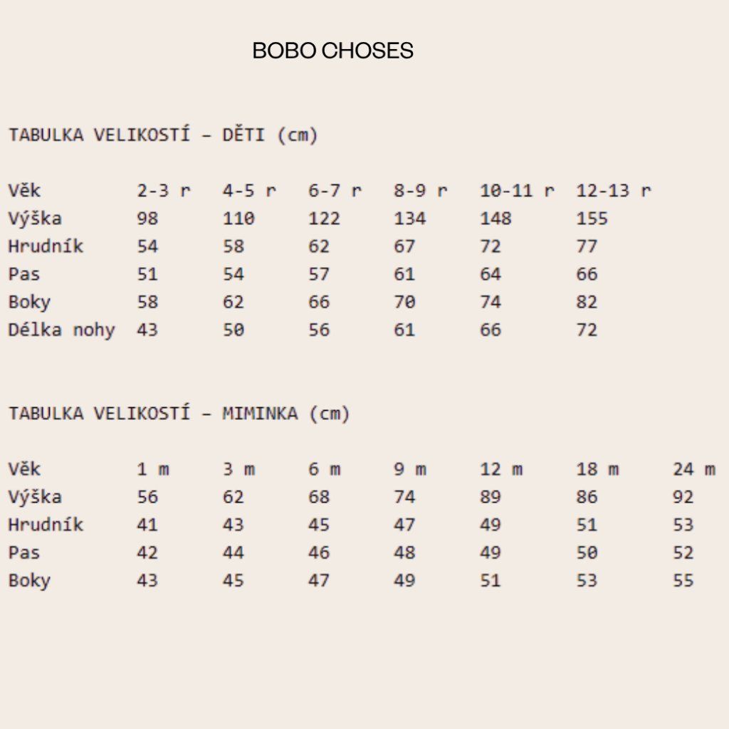 Značka Bobo Choses se zrodila v roce 2008 a od té doby vytváří imaginární světy, ve kterých mohou děti prozkoumávat svou kreativitu, hrát si a užívat si života. Jejich kolekce pro dospělé obsahují potisky a tvary Bobo Choses v dospělých velikostech pro rostoucí mladé dospělé, kteří oceňují kreativitu a rádi se baví! V Bobo Choses sází na unisex oblečení, které je pohodlné a lze jej kombinovat mnoha způsoby.