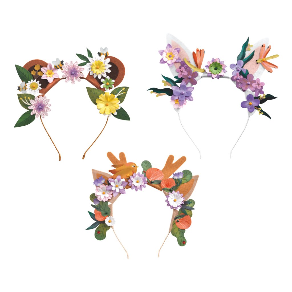 Výtvarná a řemeslná sada se 3 nádhernými zvířecími čelenkami, které si děti mohou vytvořit zdobením uší květinami a pěknými květinovými dekoracemi. Uši jsou vyrobeny z pružné samolepicí plsti a po ozdobení je lze snadno přilepit na stužkové čelenky, které se hodí pro všechny velikosti hlavy.