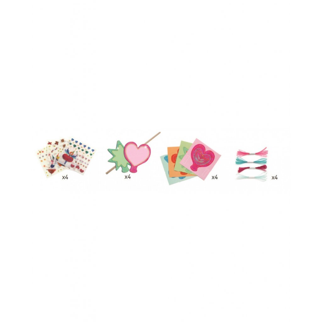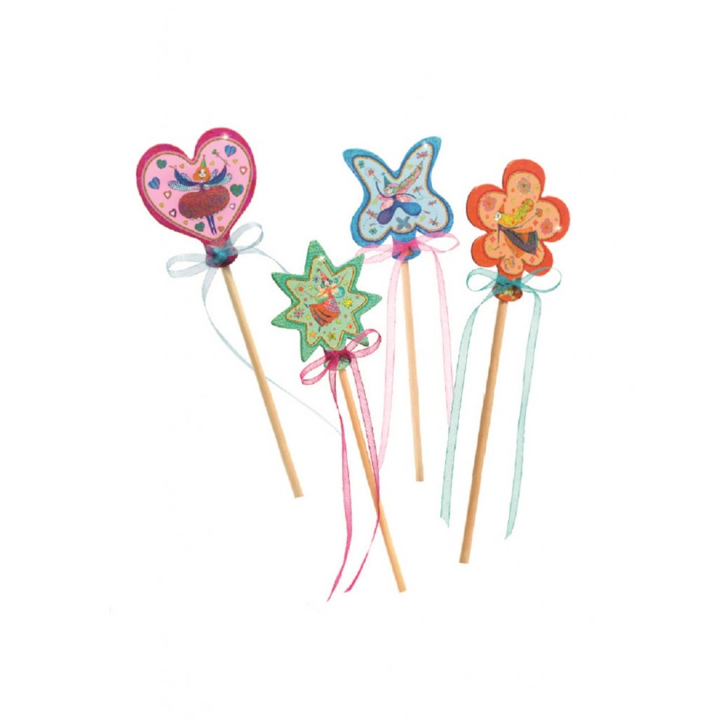 Kreativní sada Djeco Malá hůlka pro víly obsahuje vše potřebné k výrobě čtyř originálních hůlek. Děti si mohou vybrat tvar, dozdobit ho krásnými ilustracemi a mašličkami a vytvořit si tak svou vlastní kouzelnou pomůcku k hrám na víly. Tvoření rozvíjí fantazii, jemnou motoriku a dává dětem radost z vlastního výtvoru, který mohou hrdě používat při svých kouzelných dobrodružstvích.