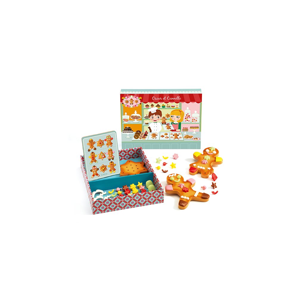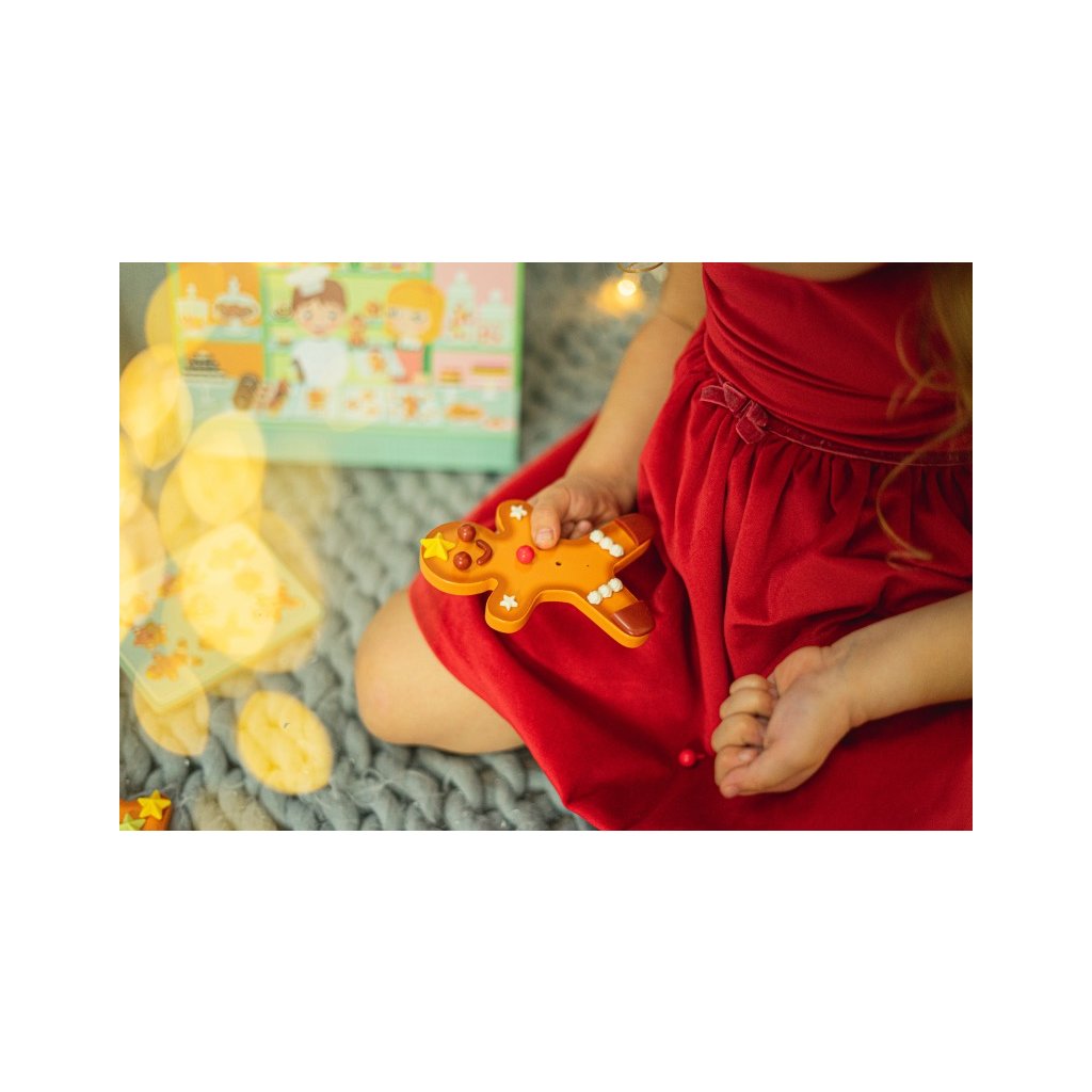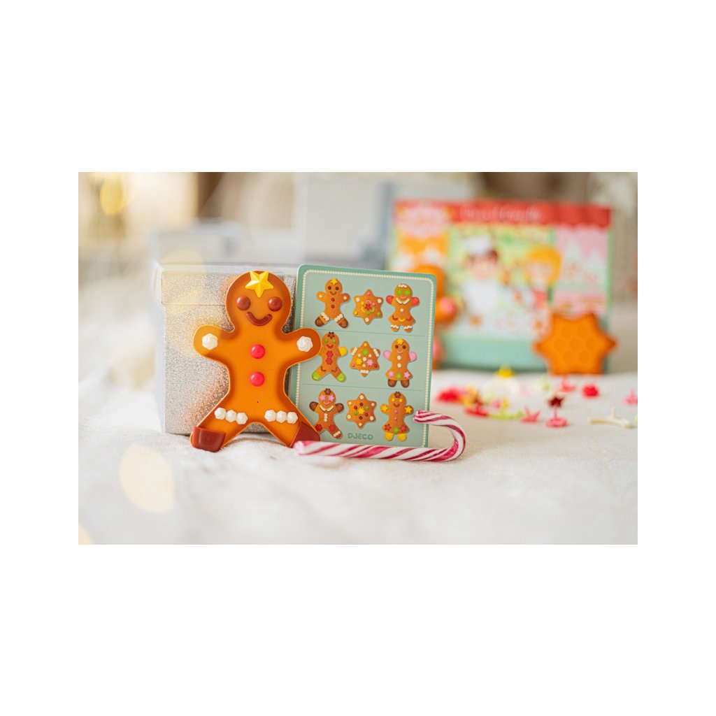 Djeco sada Pan Perníček je originální dřevěná hračka pro děti, které milují pečení a zdobení. Díky této sadě si mohou vytvořit vlastní perníčky a vyzkoušet různé způsoby dekorace – od cukrové polevy až po čokoládku nebo barevné cukrové ozdoby. Zdobení se jednoduše vkládá do připravených otvorů, takže si děti hravě vytvoří krásné sladké výtvory podle své fantazie. Hra podporuje jemnou motoriku, tvořivost a představivost.
