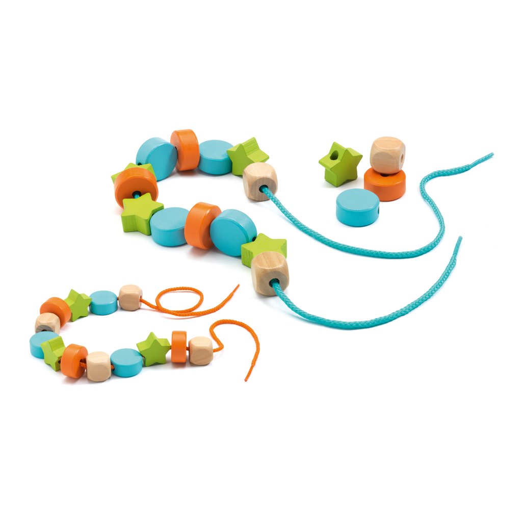 Djeco Dřevěné navlékání Tvary je klasická a přitom nesmírně zábavná hračka, která děti učí trpělivosti, soustředění a jemné motorice. Díky 24 korálkům v různých tvarech a barvách mohou děti vytvářet vlastní kombinace, řetízky či vzory a pokaždé vymyslet něco nového. Opakované navlékání rozvíjí koordinaci oko–ruka a podporuje kreativitu.