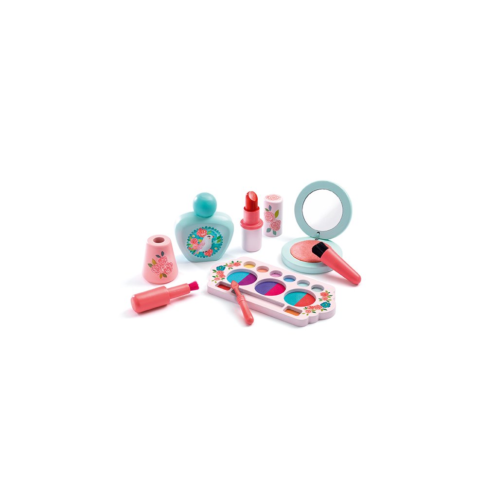 Stylový dřevěný make-up set je určený pro děti, které rády napodobují dospělé. V krabičce s motivem ptáčků najdou imitaci parfému, rtěnky, laku na nehty, paletku se stíny a tvářenku se zrcátkem – vše v dřevěném provedení. Hračka je bezpečná, bez chemie a rozvíjí fantazii i hru na profese.