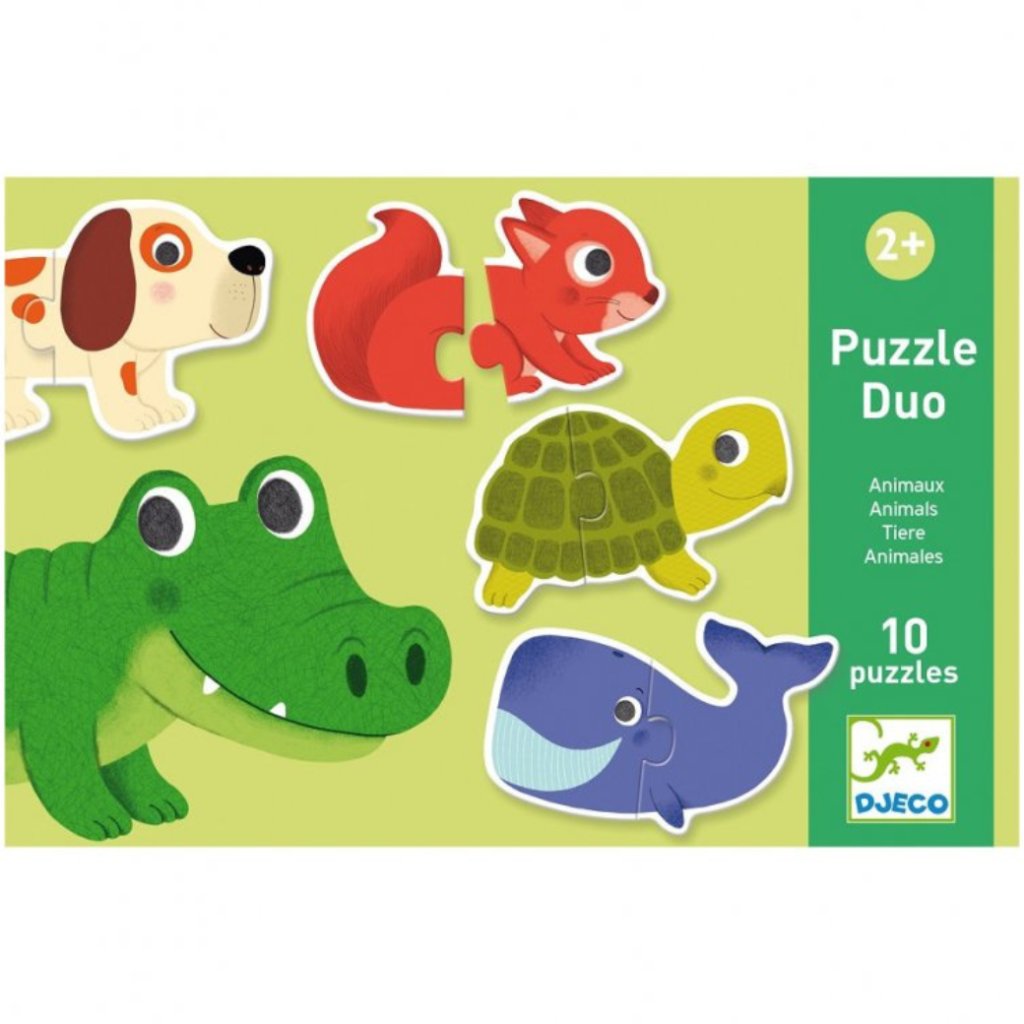 Duo puzzle Zvířátka od Djeco jsou ideální první skládačkou pro děti od 2 let. Úkolem je spojit dva dílky tak, aby vznikl celý obrázek zvířátka. Děti si přitom rozvíjejí jemnou motoriku, logické myšlení i pozornost. Veselé ilustrace psíka, želvy, krokodýla a dalších zvířátek dělají z puzzle zábavu, ke které se děti rády vracejí.