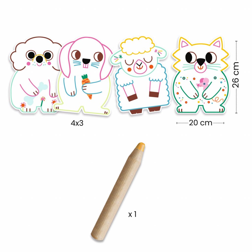 Vybarvi domácí zvířata pomocí tužky tak, aby se odhalilo, co obrázek skrývá. Je to kouzlo: tužka vybarvuje pouze určité oblasti, odkrývá vzory a odhaluje překvapení!
