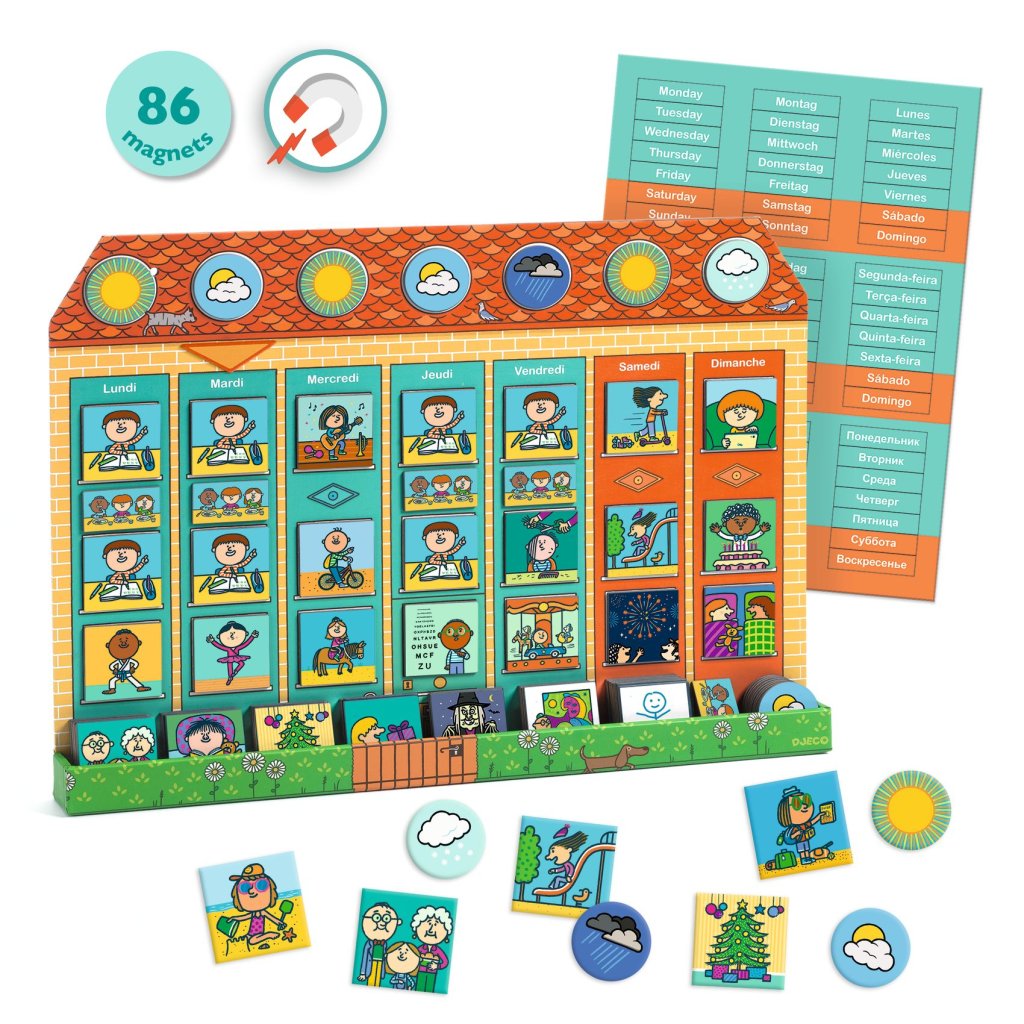 1 velká magnetická nástěnka, 86 magnetů, 1 předřezaný arch samolepek a 1 brožurka.