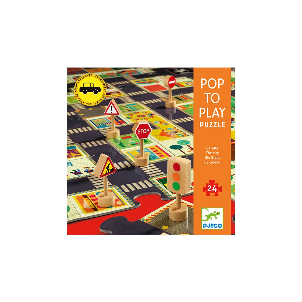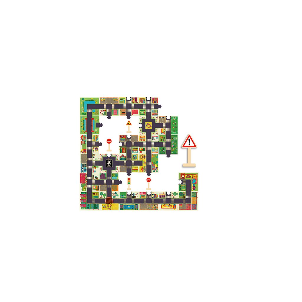 Podlahové puzzle Město od Djeco promění pokoj v rušné město plné silnic, křižovatek a dopravních značek. Děti si sestaví hrací plochu a pak si mohou hrát s autíčky, stavět dopravní situace a učit se pravidla provozu. Dřevěné značky dodají hře na autentičnosti a podpoří představivost.