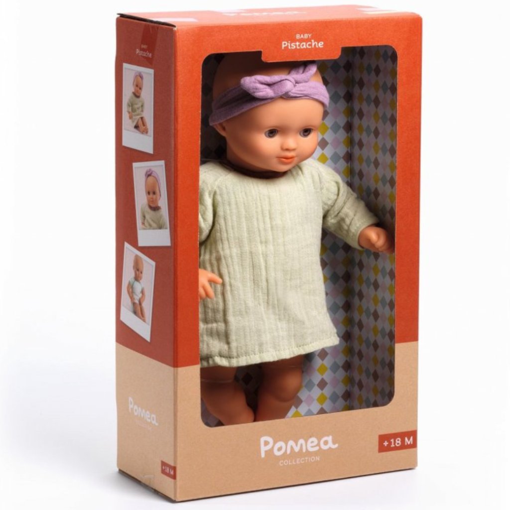 Miminko Pistache od Djeco je mrkající panenka s měkkým tělíčkem a hnědýma očima, která působí jako opravdové miminko. Díky velikosti 32 cm se skvěle vejde do náruče, a proto je ideální pro první hru na rodiče. Vinylový obličej, ruce a nohy jsou příjemné na dotek, obleček ze 100% bavlny se díky suchému zipu snadno svléká i obléká. Panenka je lehká, realistická a stane se oblíbeným společníkem na každý den.