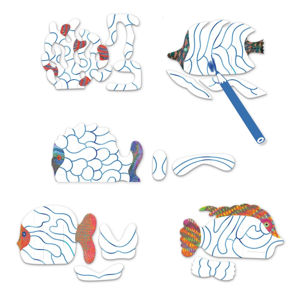 Vybarvěte rybičky a poté je sestavte. Objevuje se oceánský svět a září svými metalickými detaily.