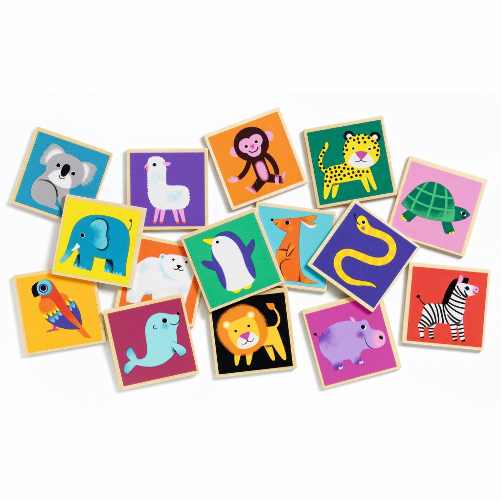 Paměťová hra s roztomilými motivy zvířat je ideální pro malé děti už od 2 let. Při otáčení dřevěných kartiček si děti procvičí paměť, pozornost i schopnost soustředění. Hra je jednoduchá, ale přináší velké nadšení – kdo najde nejvíc dvojic, vyhrává! Díky pevným dřevěným dílkům se pexeso snadno uchopuje i těm nejmenším.