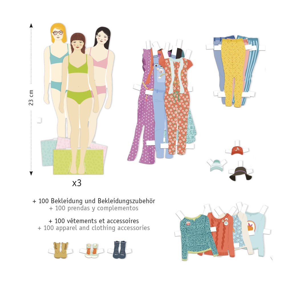 Velká sada vystřihovánek přináší dětem tři kartonové modelky a bohatou kolekci oblečení, bot, kabelek, čelenek a dalších doplňků. Děti si mohou hrát na stylisty, kombinovat různé kousky a vytvářet vlastní módní příběhy.