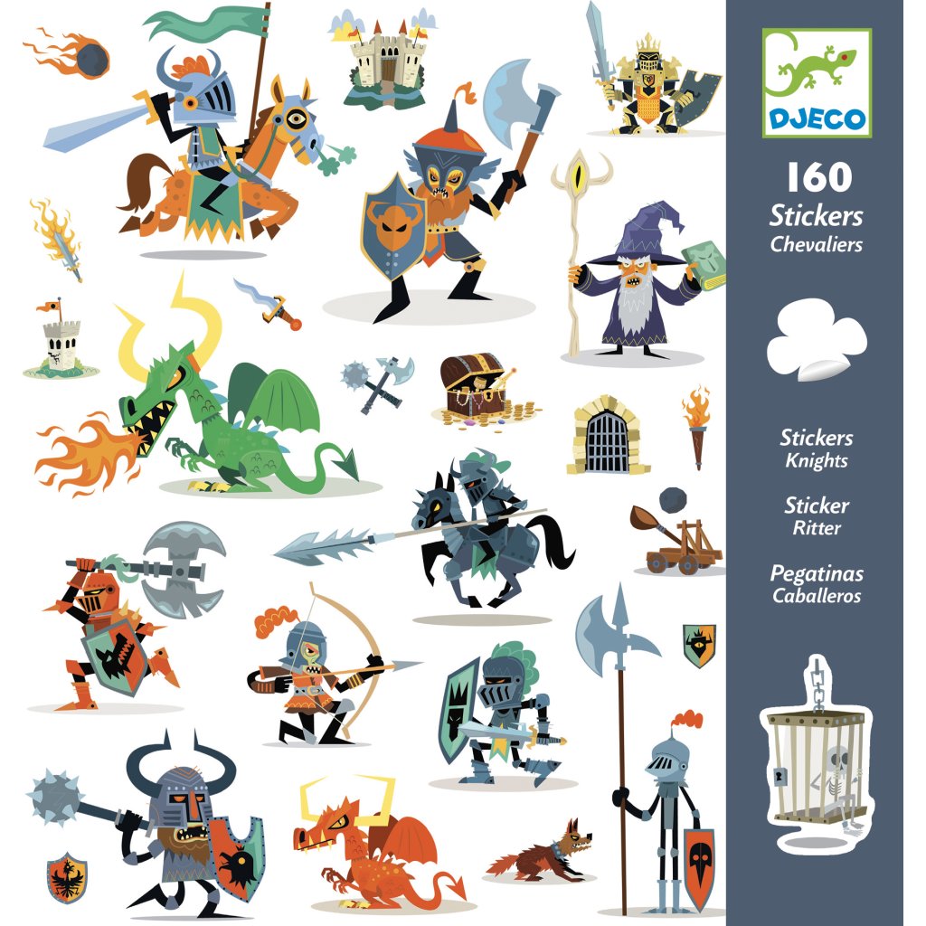Krásné samolepky rytířů v boji. Sada obsahuje 4 archy (vždy 2 jsou stejné) s celkem 160 samolepkami.