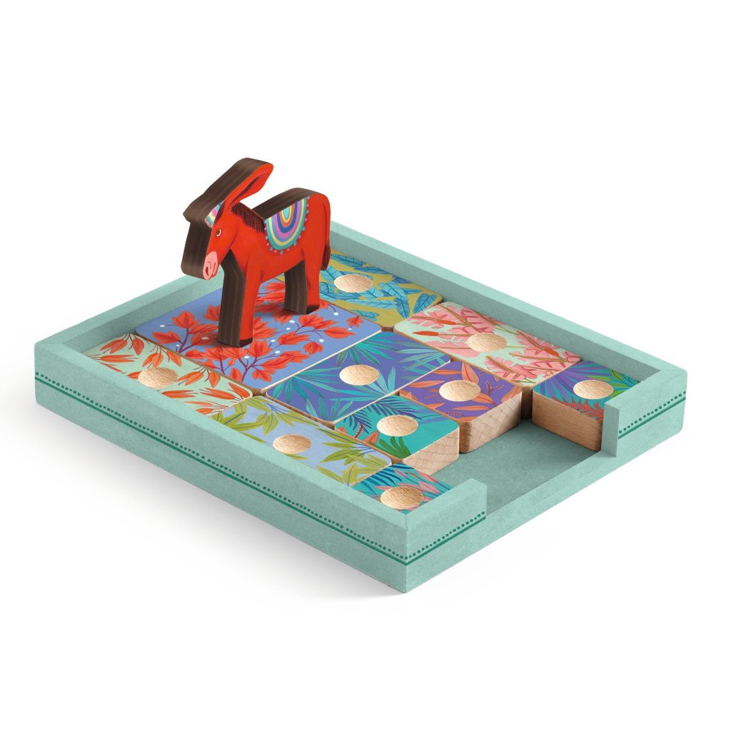Obsah: 1 dřevěná deska, 10 silných dřevěných dlaždic a 1 brožura s pravidly hry. Pravidla hry v 10 jazycích.