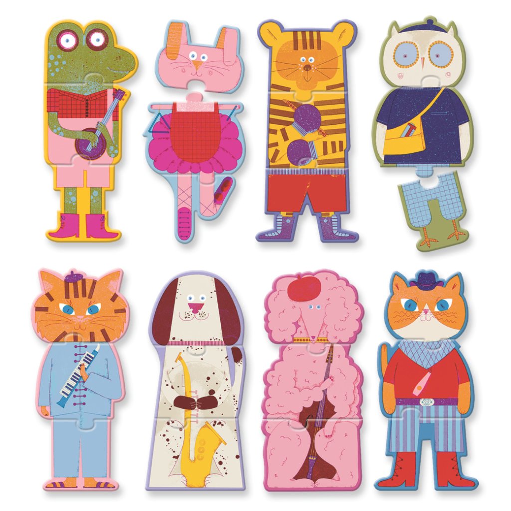 Puzzle trio Orchestra je vzdělávací puzzle pro nejmenší s motivem zvířatek. Dítě sestavuje siluety zábavných zvířat hudebníků - na výšku!