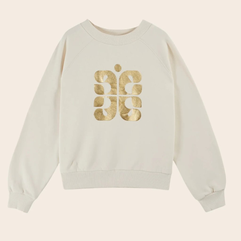 Stylová mikina z jemného organického bavlněného žerzeje v barvě ecru, zdobená černým potiskem loga Emile et Ida. Díky měkkému materiálu je příjemná na každodenní nošení a snadno se kombinuje s džíny i sukněmi.