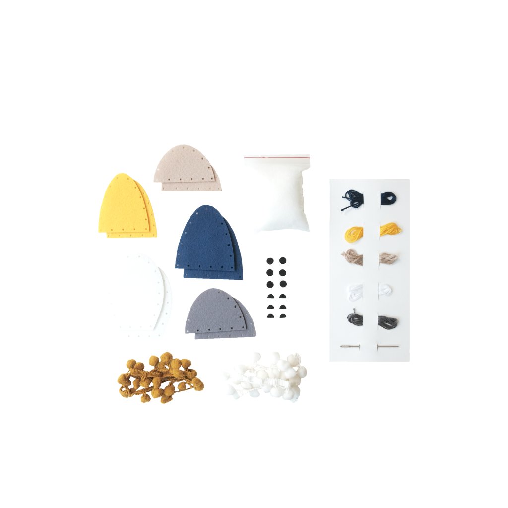 • Obsah balení: 5 bavlněných nití, 2 pompony, jehla, výplň, ozdoby