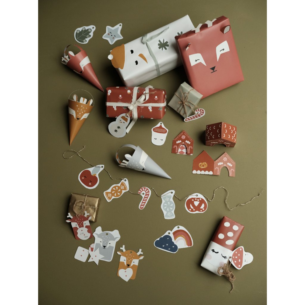 • Obsahuje: balicí papír, visačky na dárky a různé samolepky