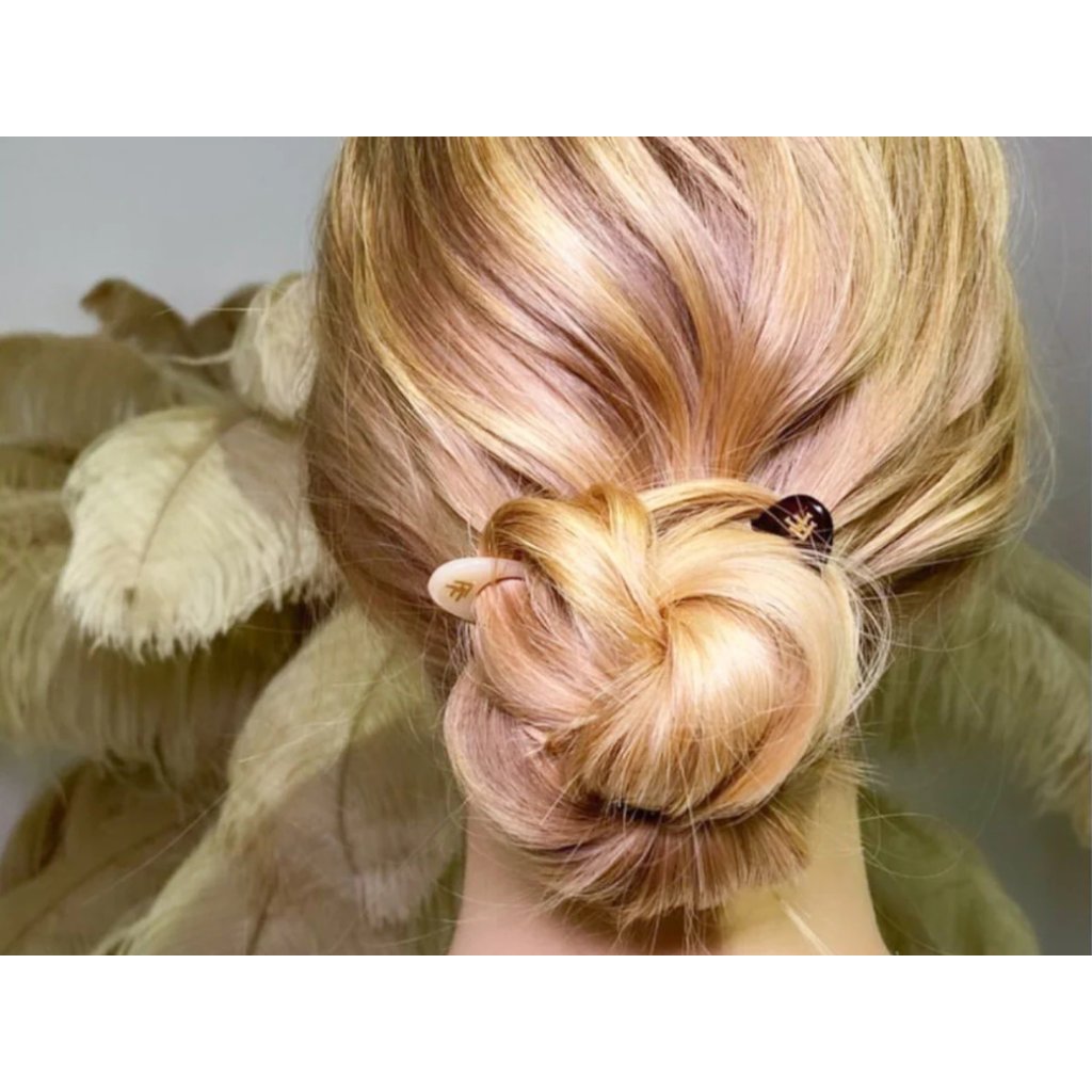 - Rovné a uhlazené vlasy – Pokud máte velmi hladké vlasy, doporučuje se hair pin zasunout do účesu křížem nebo v kombinaci s další sponkou pro lepší stabilitu.