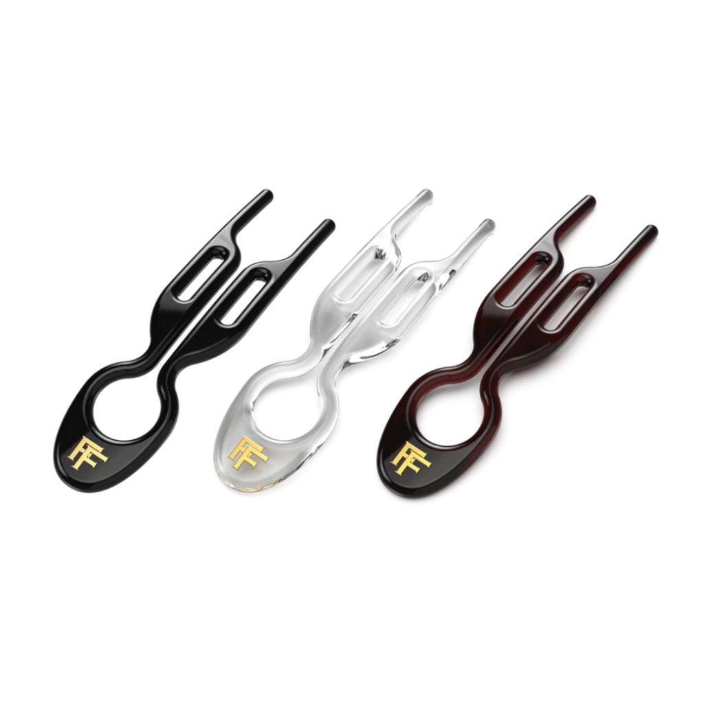 - Rovné a uhlazené vlasy – Pokud máte velmi hladké vlasy, doporučuje se hair pin zasunout do účesu křížem nebo v kombinaci s další sponkou pro lepší stabilitu.