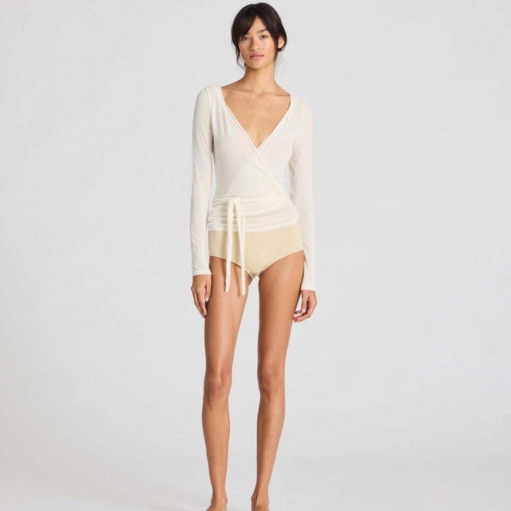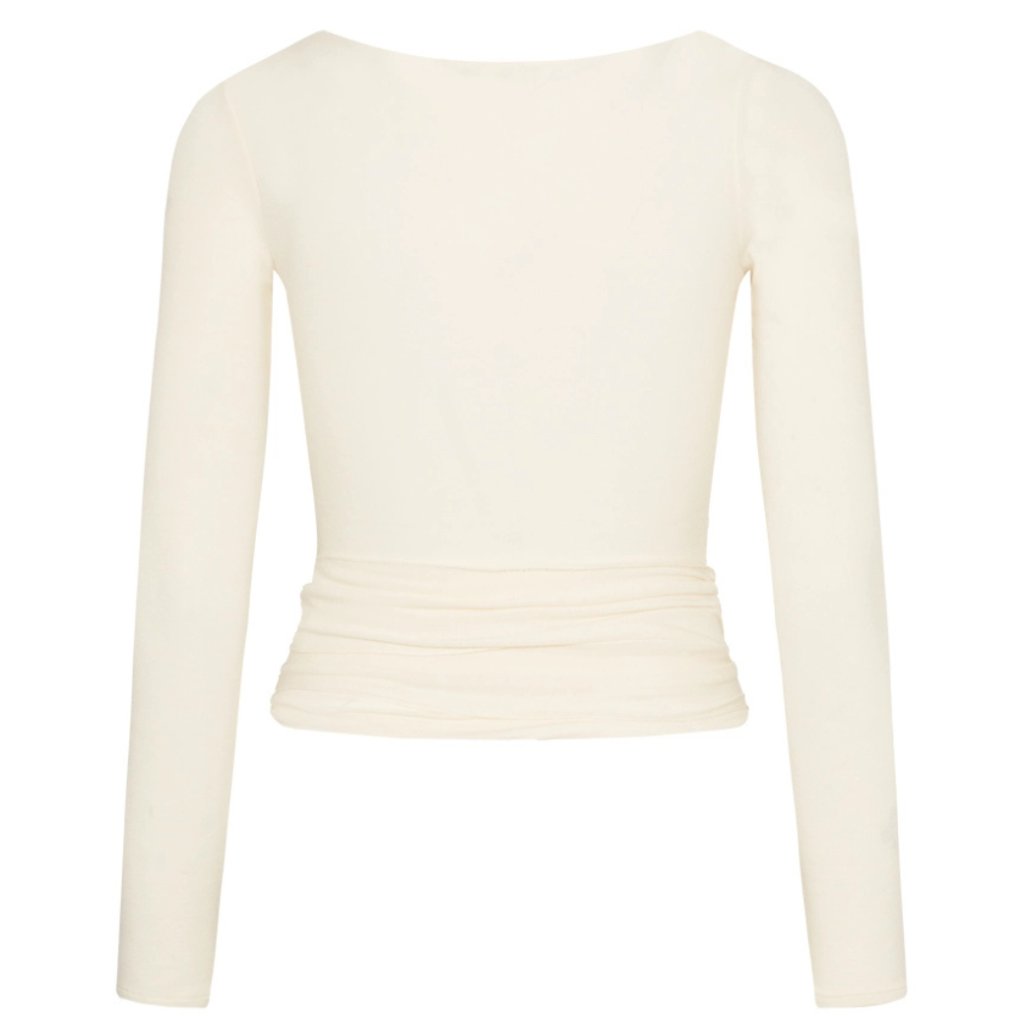 Anne Top je krásné, měkké tričko s dlouhým rukávem a zavinovacím střihem, vyrobené z jemné směsi 67 % viskózy, 28 % vlny a 5 % elastanu. Díky italské tenké pletenině z vlny a viskózy působí elegantně, příjemně se nosí a snadno se přizpůsobí postavě pomocí zavazovacích šňůrek.