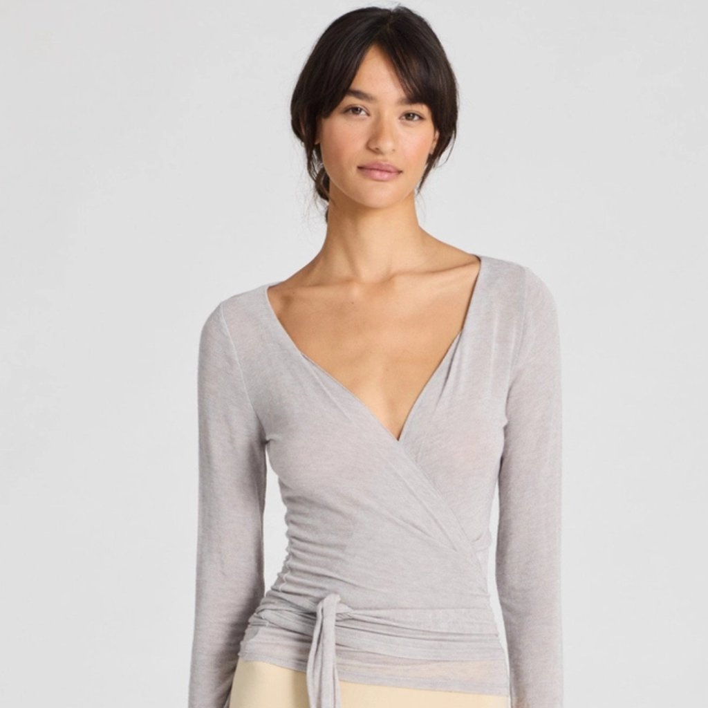 • Dlouhé rukávy a ženský zavinovací střih