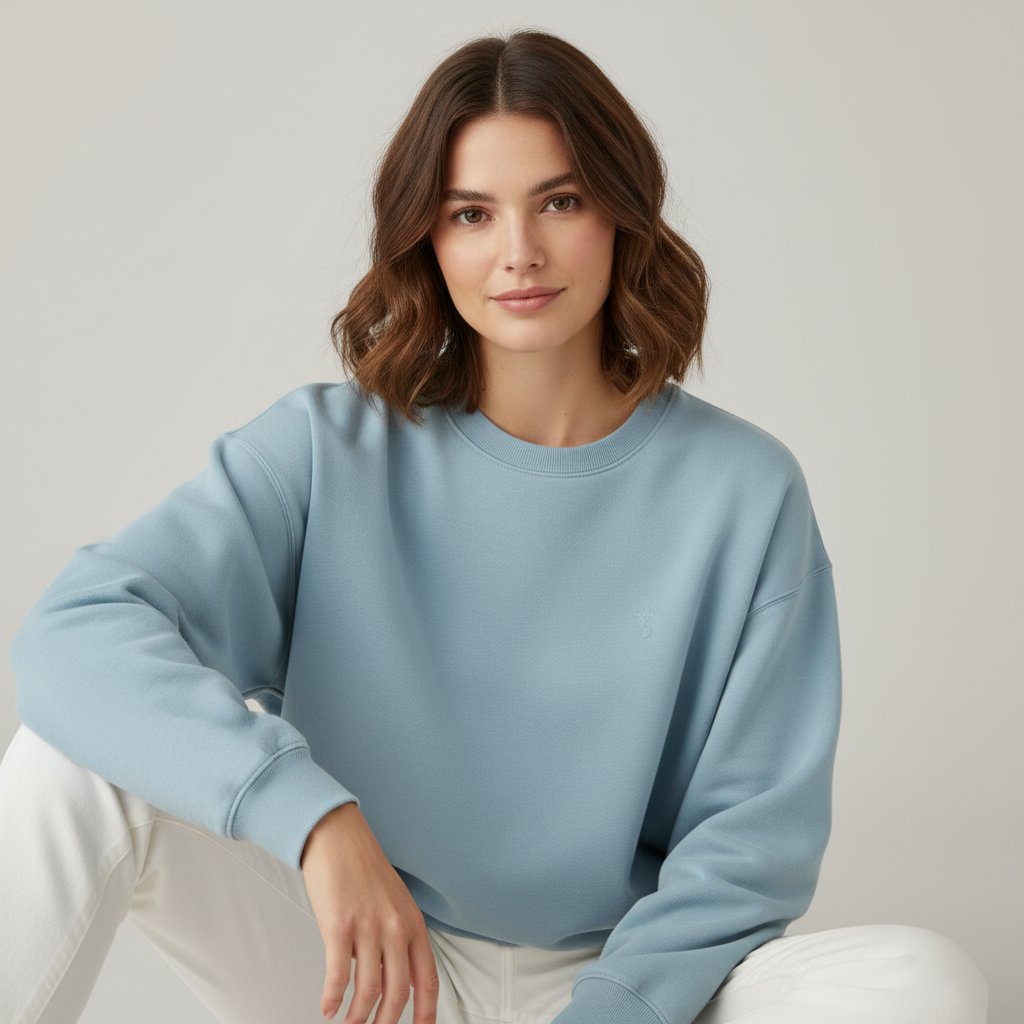 Unisex mikina je vyrobená z měkké organické bavlny. Má spadlá ramena, objemné dlouhé rukávy a žebrované manžety.