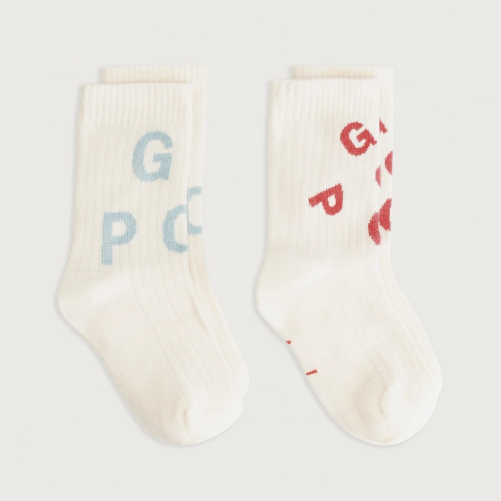 Dva páry sportovních ponožek s logem GL POP v odstínech Cherry a Sky.