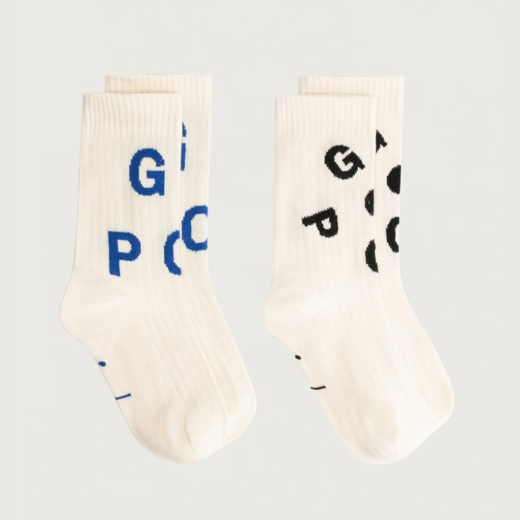 Dva páry sportovních ponožek s logem GL POP v odstínech Nearly Black a Blue Moon.