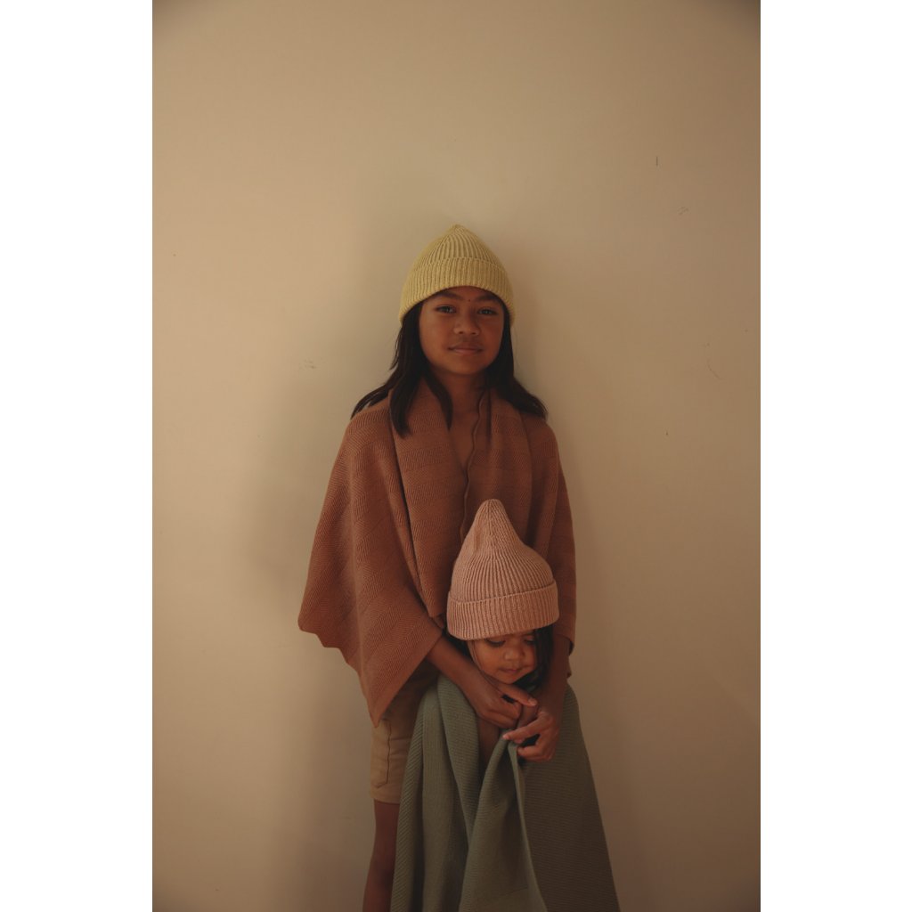 Hvid, značka založená v roce 2015 Caroline a Stevenem, je belgická oděvní značka nabízející ultra měkké pletené doplňky pro děti i dospělé. Pomocí 100% merino vlny s certifikací OEKO-TEX® bez mulesingu značka vytváří vysoce kvalitní oděvy s dlouhou životností, které lze nosit po celý rok díky termoregulačním vlastnostem vlny. Toto prodyšné, nesvědivé, antibakteriální vlákno je ideální pro citlivou pokožku novorozenců a malých miminek, které najdou pohodlí v jeho ultra měkké struktuře. Merino vlna navíc obsahuje lanolin, přirozeně samočisticí prostředek, což znamená, že i přes pravidelné používání váš oděv nezadrží pachy. Od čepiček po kukly, přikrývky, boty, šátky a plyšové hračky, všechny se vyrábí v malém množství v rodinné dílně přímo v Belgii.