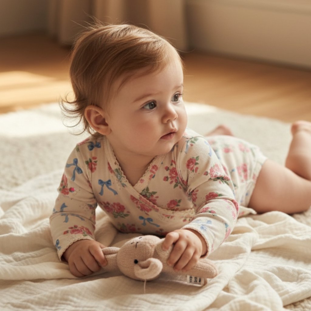 Praktický zavinovací střih umožňuje obléknout miminko bez nutnosti přetahování přes hlavu, což zajišťuje maximální pohodlí.