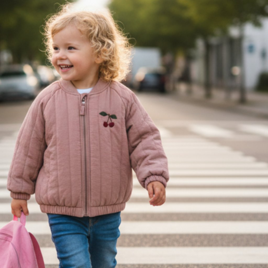 Lehká a polstrovaná termo bunda. Bunda je odolná proti větru a odpuzuje vodu s povrchovou úpravou Bionioc ECO. Navržena s praktickým poutkem na zavěšení, dvěma bočními kapsami a předním zipem. Má elastické manžety a půvabné výšivky. Na zadní straně bundičky je třešnička s flitry.