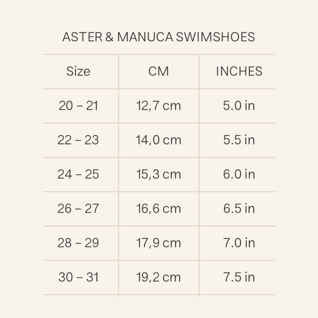 Plavací boty s jemným třpytivým efektem a volánkovým detailem jsou vyrobeny z rychleschnoucího a pružného materiálu, který těsně obepíná chodidlo. Protiskluzová gumová podrážka zajišťuje stabilitu na mokrém povrchu. Materiál poskytuje ochranu proti slunečnímu záření s faktorem UPF 40+.