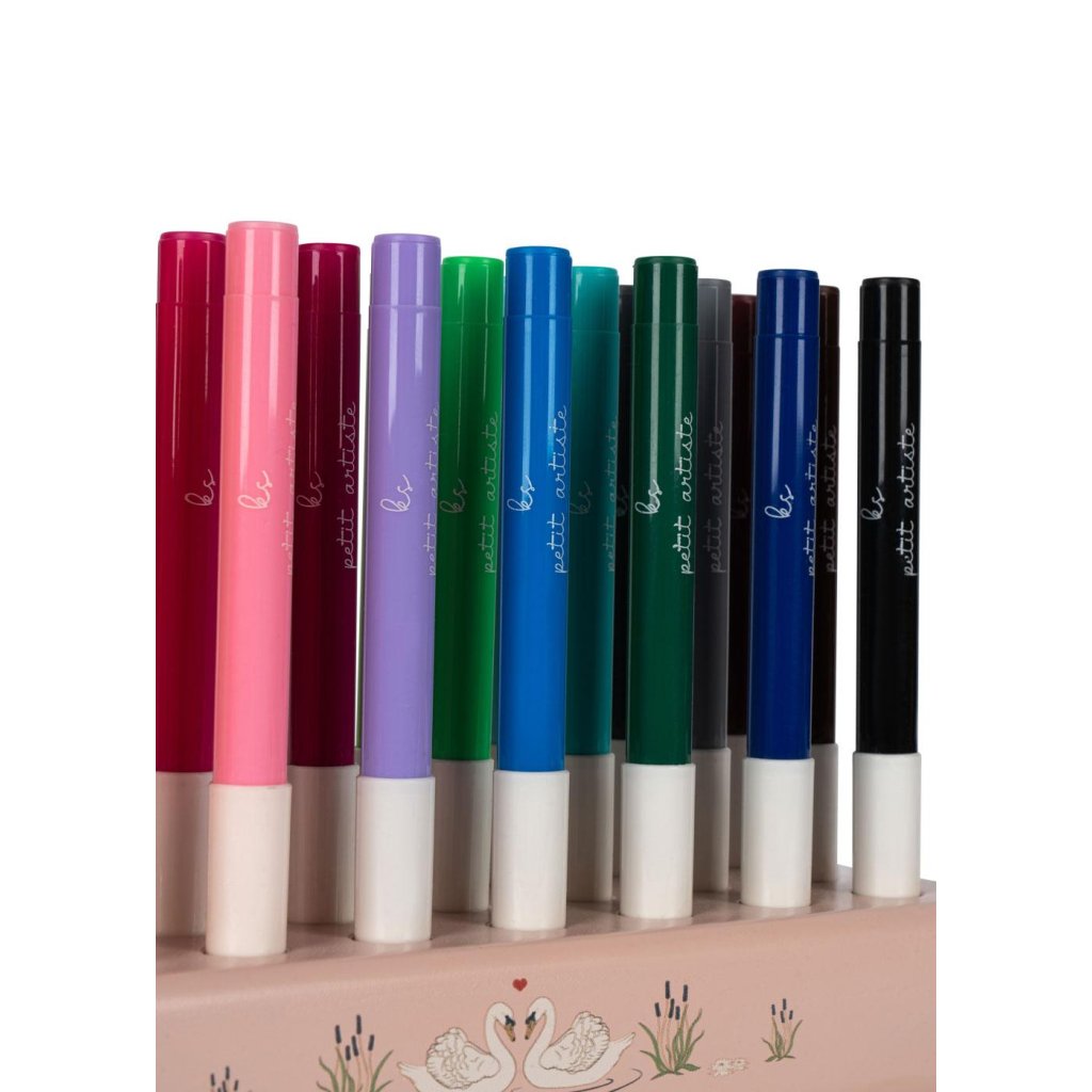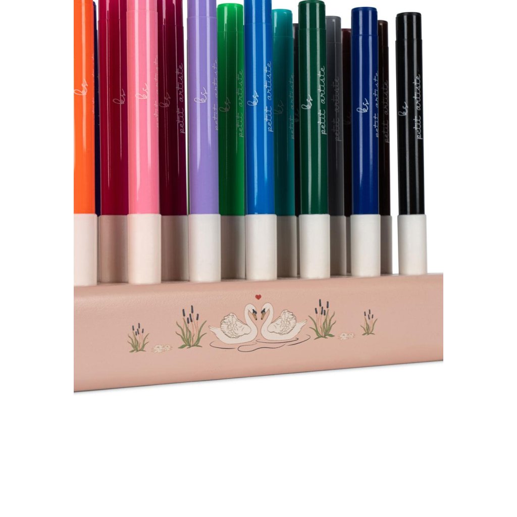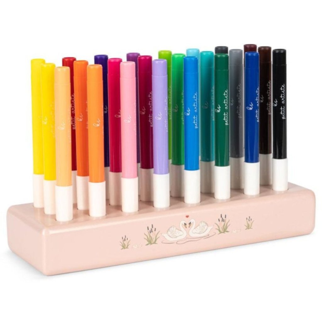 Sada 24 fixů v dřevěném bloku vyrobeném ze 100% MDF. Všechny barvy jsou na vodní bázi.