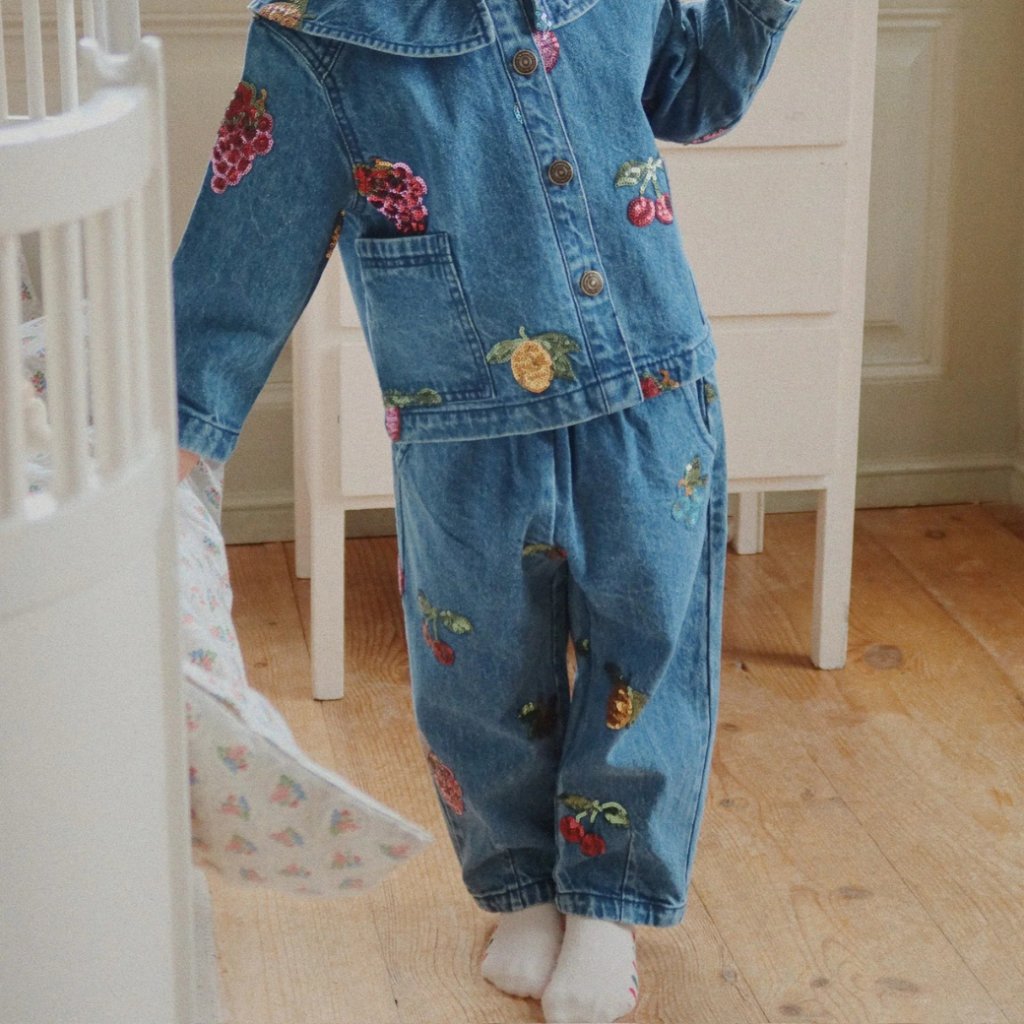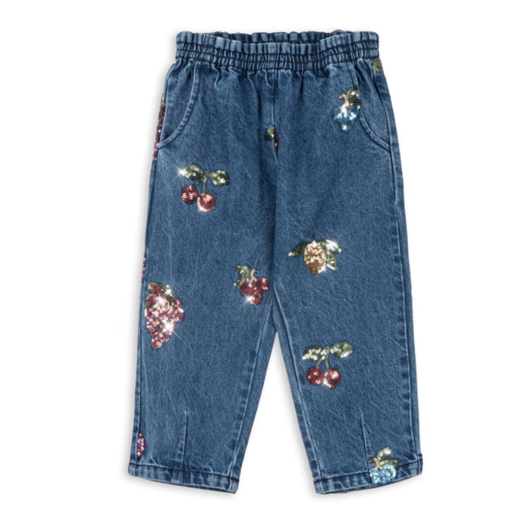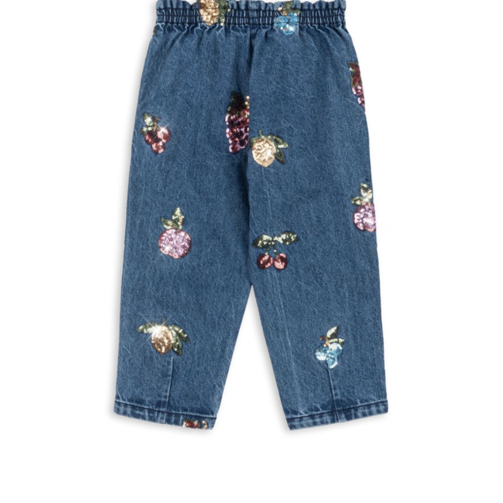 Ozdobeny hravými vyšívanými flitrovými motivy ovoce, které dodávají outfitu veselý a originální vzhled.