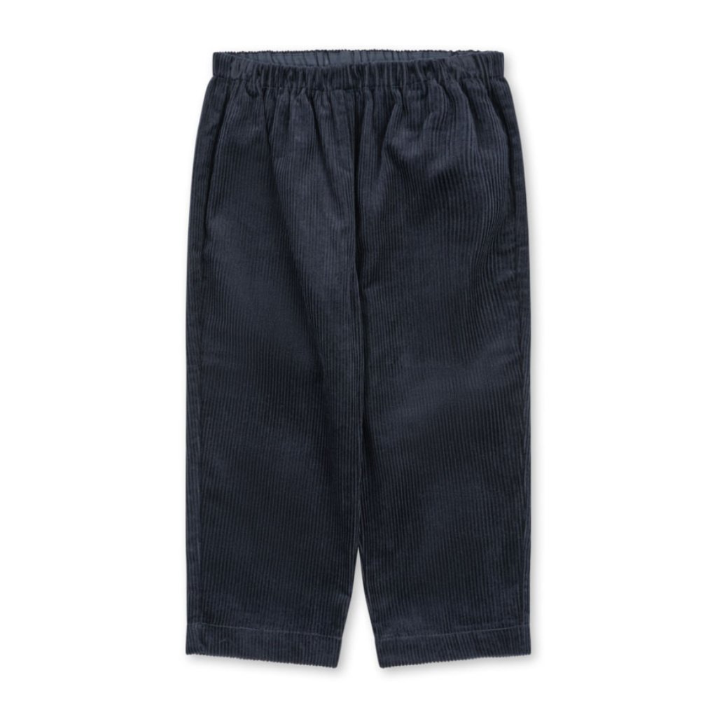 Měkké kalhoty z pevného manšestru s uvolněným střihem, rovnými nohavicemi a pružným pasem. Vyrobené ze 100% organické bavlny.