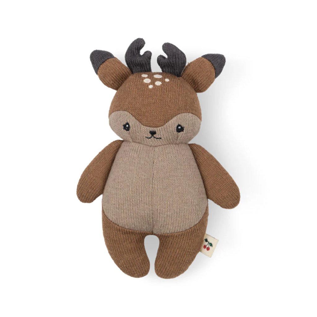 Roztomilý mini jeleník od značky Konges Sløjd je navržený speciálně pro ty nejmenší. Díky své měkkosti, jednoduchému tvaru a ideální velikosti se snadno drží a stává se prvním kamarádem na mazlení, objevování i uklidnění.