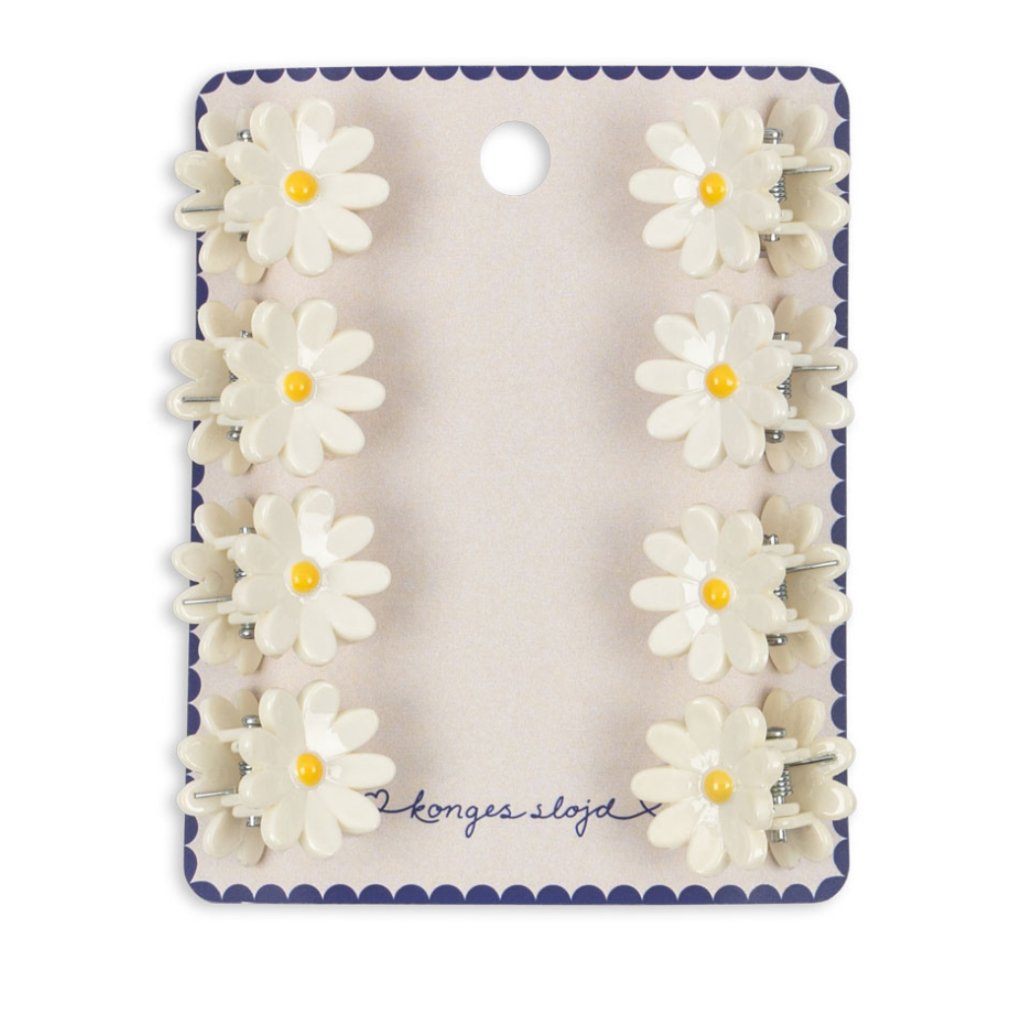 Sada 8 mini spon do vlasů s motivem kopretin dodá každému účesu hravý a jemný detail. Sponky se snadno zacvaknou a jejich hladké provedení je příjemné i pro malé ruce. Noste je po jedné pro jednoduchý look nebo zkombinujte více najednou – každý účes bude originální.