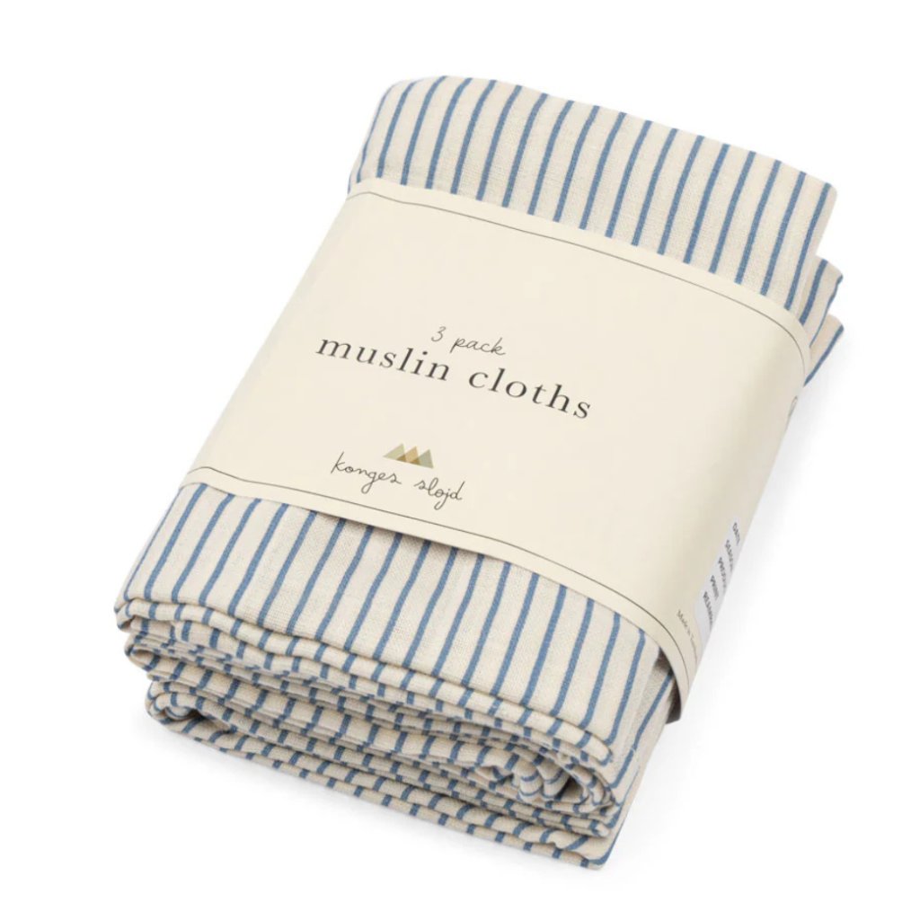 KONGES SLOJD Mušelínová plena 3 ks - STRIPE BLUIE