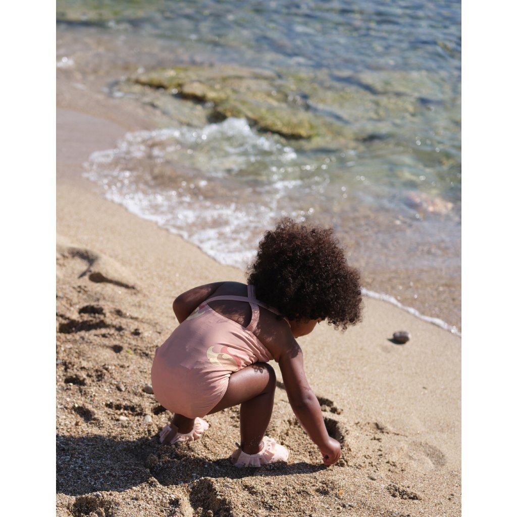 Plavky vyrobené z 80 procent recyklovaného polyesteru a 20 procent elastanu. Navrženo se zkříženými zády.