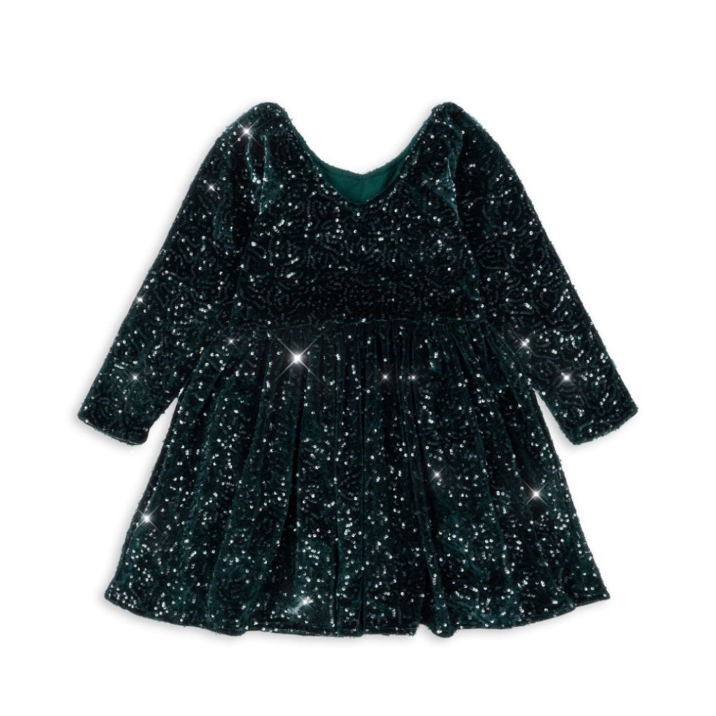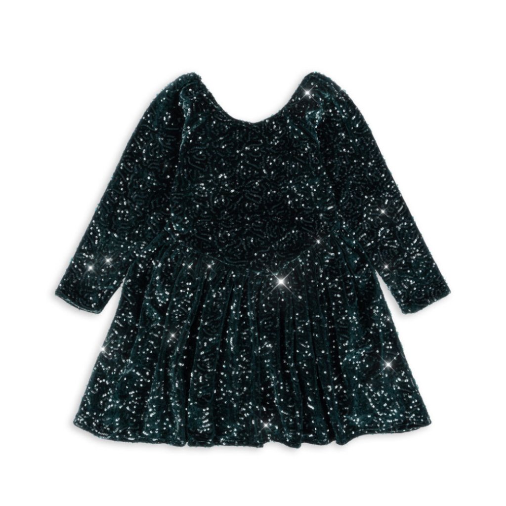 Lesklé sametové šaty Viola – Sycamore s jemným třpytem a celoplošným zdobením flitry jsou perfektním kouskem pro sváteční i hravé příležitosti. Měkký samet s pružností zaručí pohodlí při každém pohybu, zatímco zářivý vzhled přidá šatům kouzelný efekt.