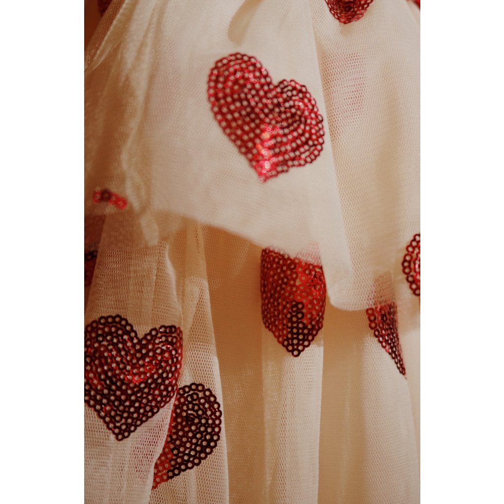 Krásné šaty od značky Konges Slojd z limitované valentinské kolekce, s objemnou tylovou sukní a krátkými tylovými rukávy, podšité jemnou bavlnou.
